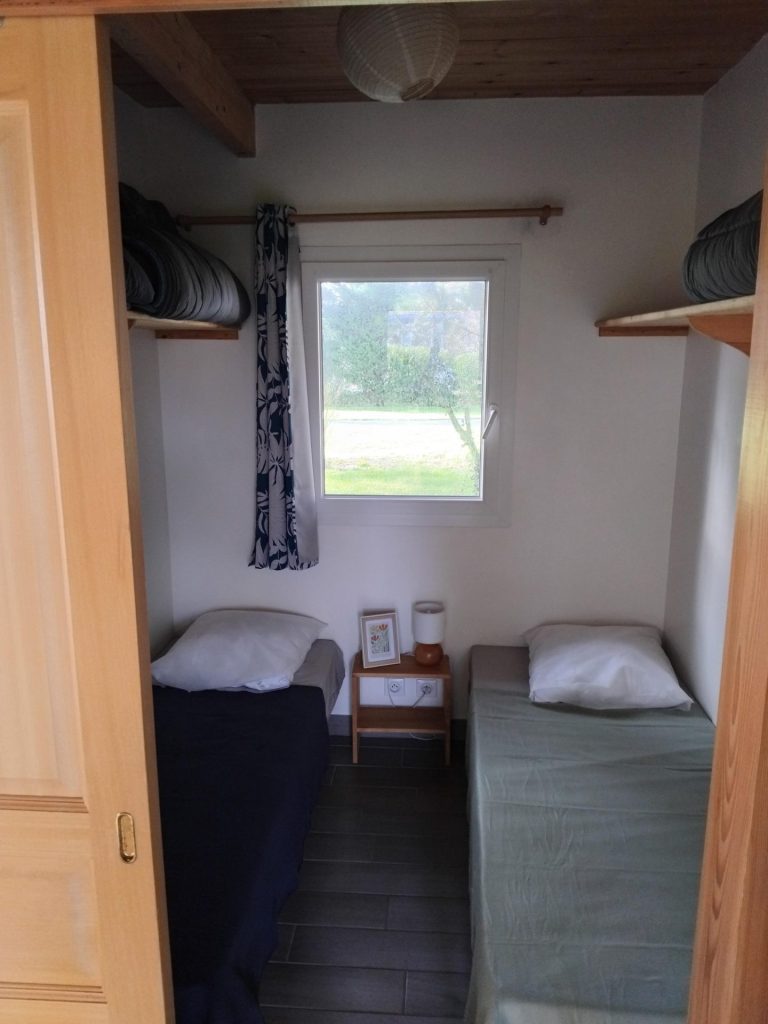Le chalet bleu vous offre une vue époustouflante avec en premier plan, un verger et en second plan une vue mer de la pièce à vivre et de la terrasse. D’une superficie de 35 m², ce chalet accessible aux personnes à mobilité réduite est composé : 1 pièce à vivre avec cuisine1 Salle d’eau avec douche,lavabo et WC (adaptés aux PMR)1 grande chambre 1 lit double 140 x2001 chambre 2 lits simples Tarifs et réservation retour