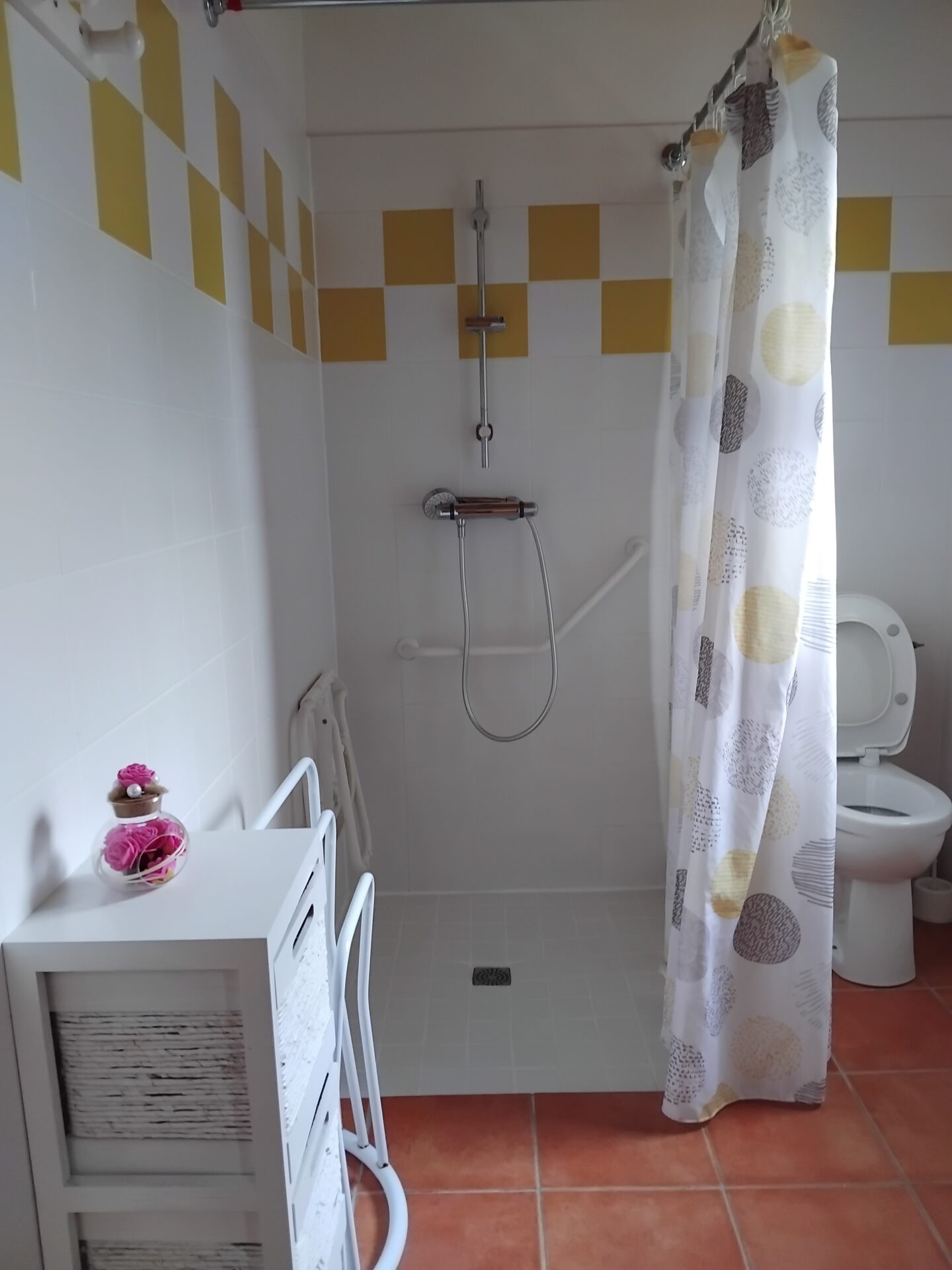 De giute Les Pommiers, op het platteland, op 500 m van het strand, is een volledig gerenoveerde, ruime en lichte accommodatie met uitzicht op zee. Mogelijkheid om gebruik te maken van de voorzieningen en diensten van de camping Les Vergers de Squividan. WIFI-punt op de camping Accommodatie aangepast voor mensen met beperkte mobiliteit Halfvrijstaand huis met omheinde tuin en terras voor 4 personen: op de begane grond, 1 slaapkamer met een tweepersoonsbed 140, keuken-woonkamer, badkamer (Inloopdouche, wc en wastafel voor gehandicapten). Boven; 1 slaapkamer met 2 eenpersoonsbedden 90 en een mezzanine met een slaapbank. TelevisieVaatwasserKoelkastMagbetronOvenKoffiezetapparaatWasmachineBarbecue Deze gite met 2 slaapkamers + mezzanine voor 4/6 personen wordt verhuurd met een complete inrichitng voor het aantal personen dat in de inventaris is voorzien. Handdoeken en lakens worden niet verstrekt. U kunt ze echter wel huren (reserveren verplicht). We hebben ook alles wat nodig is voor baby’s (kinderstoel, kinderbedje, badje) op reservering. Als u nog meer informatie nodig heeft om uw keuze te maken… Muriel et Fabien zijn u graag van dienst bij de receptie van de camping op 02 98 58 09 12. Tarieven en reservering terug
